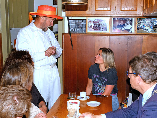 Daarna werd er koffie of iets anders geschonken in de kaasdragerskamer. Daar vertelde kaasvader Willem Borst de geschiedenis van het kaasdragersgilde en over de locatie waar men zich op dat moment bevond.