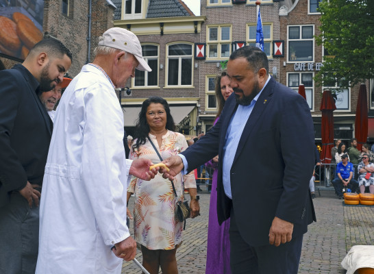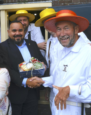 De heer Rijna, gezaghebber van Bonaire luidde op vrijdag 24 juni precies om 10.00 uur de bel, hét teken dat de markt geheel volgens traditie kon beginnen. Hij deed dit op uitnodiging van het college van burgemeester en wethouders van Alkmaar. Voorafgaand aan het bezoek aan de kaasmarkt ontving burgemeester Anja Schouten het gezelschap uit Bonaire in het stadhuis.