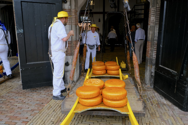 Hier bekijken ze samen een kaas en bespreken de kwaliteit ervan.