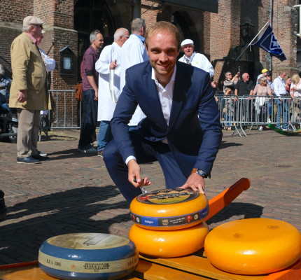 Belluider Jeffrey Laan woont in Alkmaar en heeft dus ook een echte klik met de Alkmaarse Kaasmarkt. Hij deed dit op uitnodiging van FrieslandCampina Zijerveld.
