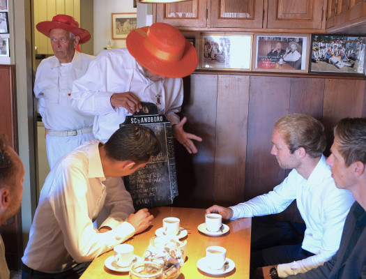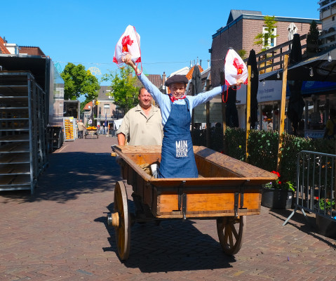 Kaasverkoper Jan liet zich door Josmar deze keer maar eens met de handkar vervoeren.