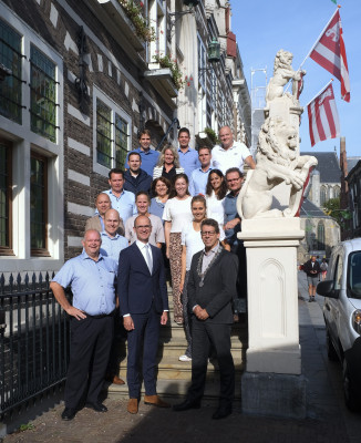 Voorafgaand aan het bezoek aan de kaasmarkt ontving wethouder Robert te Beest Peter Beemsterboer en de 10 locatiemanagers van FrieslandCampina in het stadhuis.