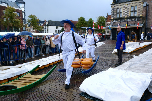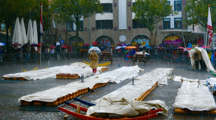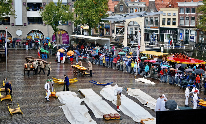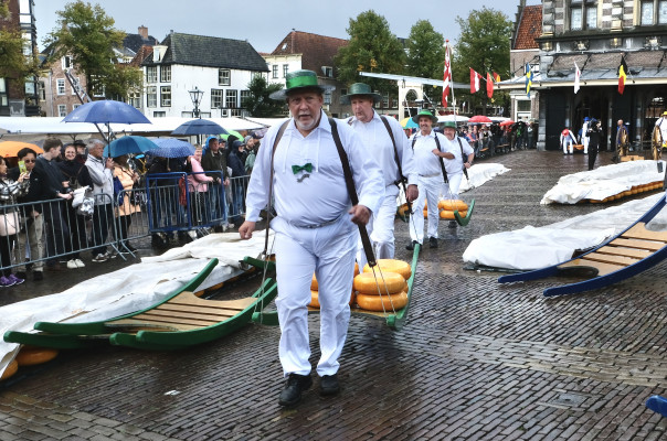 Ook de kaasdragers laten zich niet tegenhouden door een paar druppels.